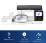 - Plenty of sewing designs and fonts 291 built-in stitches, 10 styles of one-step auto-size buttonholes, and 5 sewing lettering fonts for your sewing side.