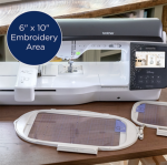 - Large work area A maximum embroidery field of 6" x 10" can accommodate large projects, and the healthy 8.3" from needle to arm gives you more room to easily maneuver fabric.